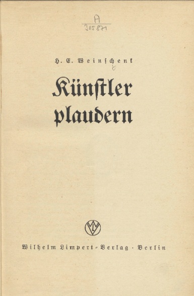 Harry Erwin Weinschenk, "Künstler plaudern"