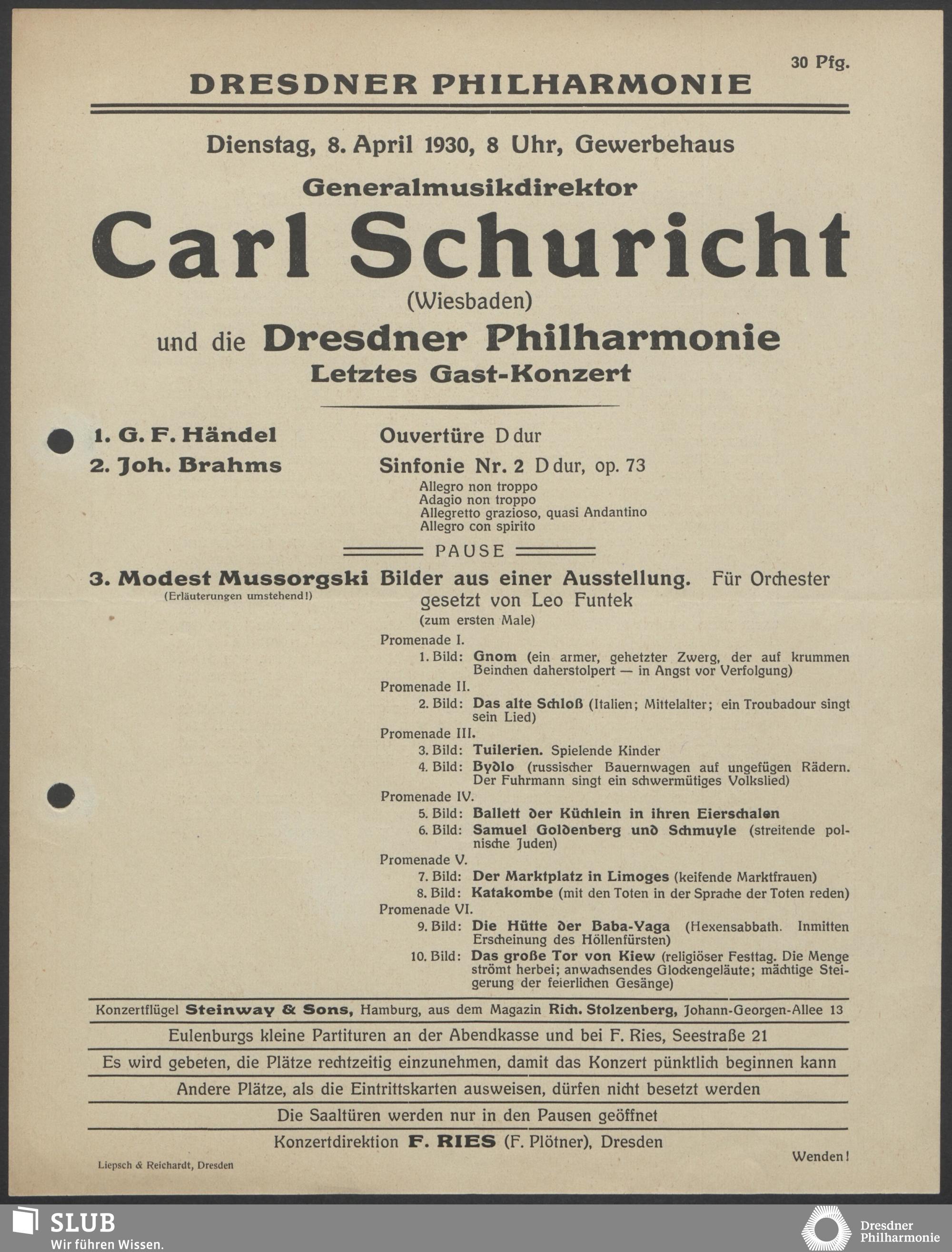 | 1912 | 1 March | Städtisches Kurorchester | Wiesbaden, Kurhaus, Grosser Saal | 10th abonnement concert | *MC | |||