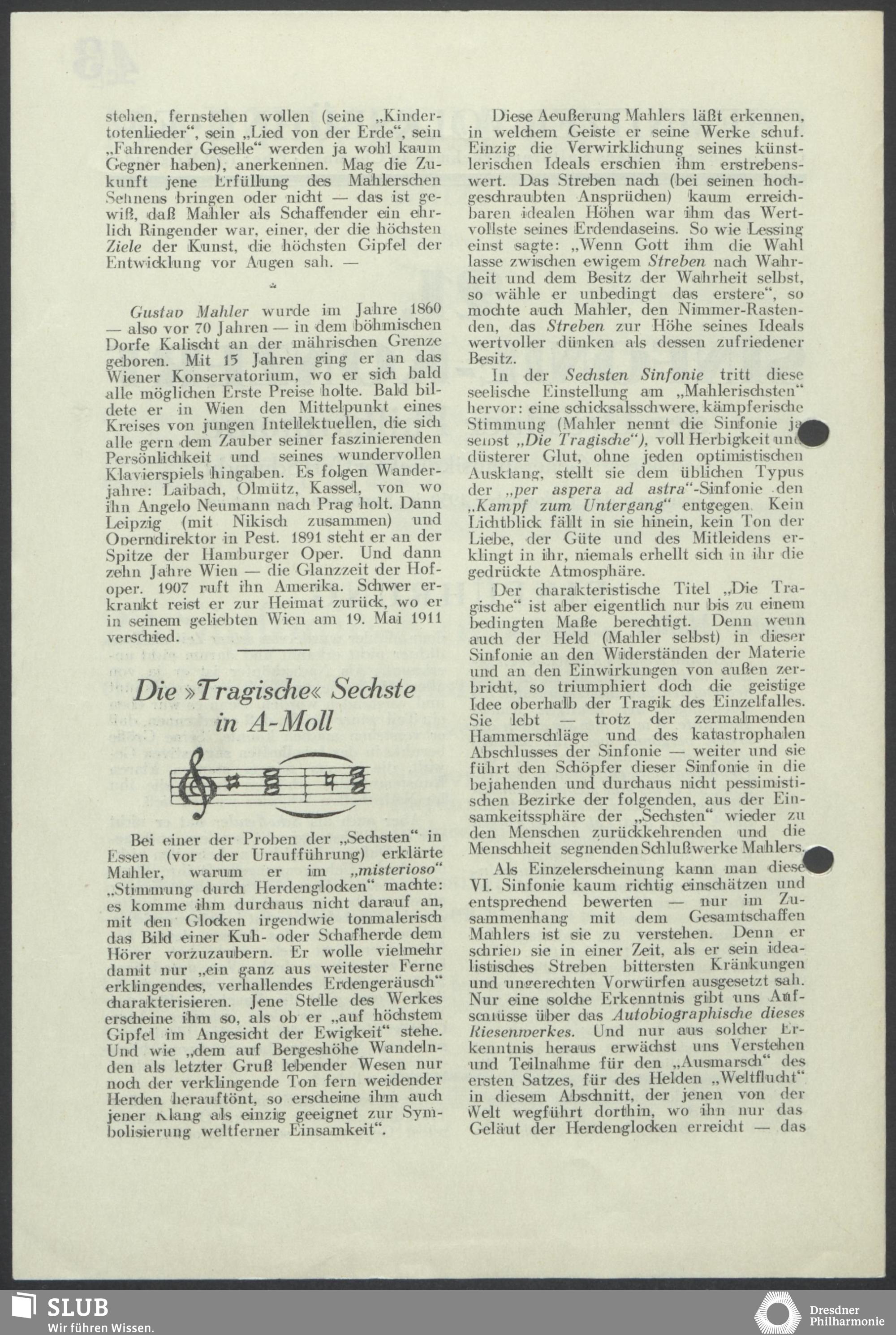 | 1913 | 28 September | Das verstärkte Wiesbadener Kurorchester | Wiesbaden, Kurhaus, Grosser Saal abends 7:30 | Mahler:Sym.8 | Gertrude Foerstel, Martha Winternitz, Maria Freund, Anna Erler, Otto Wolf, Nicola Geisse-Winkel, Wilhelm Fenten, Der Rühl'sche Sangverein, Der Neeb'sche Männerchor, Vereinigung für Chorgesang, Schüler des städt. Reformrealgymnasiums, Schüler der städt. Oberreakschule am Zeitenring, Friedrich Petersen (Org.) | Erstaufführung | *14, *MC (Program1, Program2, Wiesbadener Bade-Blatt, WNN | |