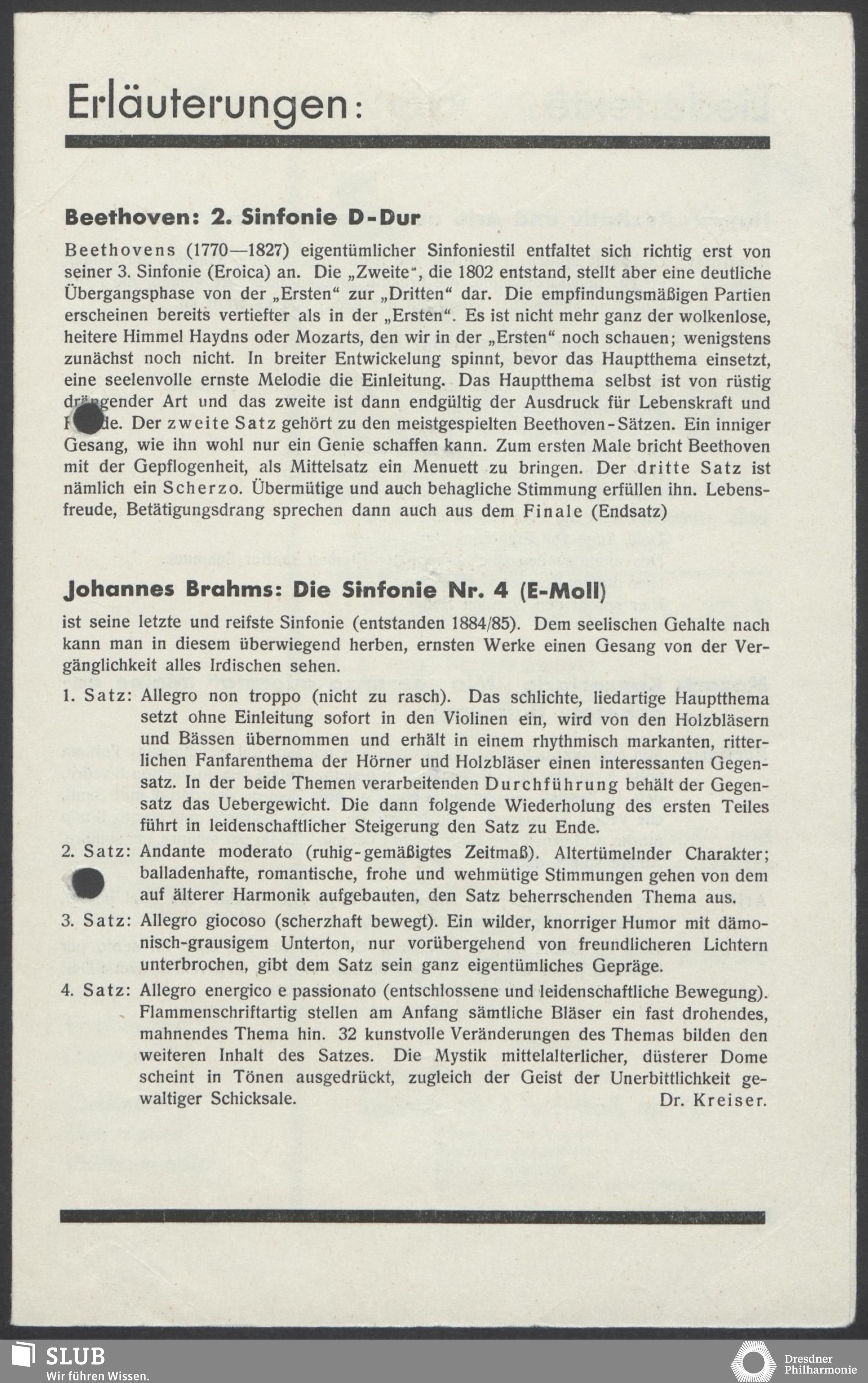 | 1913 | 7 November | Städtischen Kurorchesters | Wiesbaden, Kurhaus | Brahms: Sym.2, Vokal-Quartette mit Klavierbegleitung, Liebeslieder-Walzer für 4 Solostimmen und Klavier zu 4 Händen, Akademische Fest-Ouverture | Aaltje Noordewier-Reddinglus (S.), Adrienne von Kraus-Osborne (A.), Matthäus Römer (T.), Felix von Kraus (B.) | III. Konzert (Brahms-Abend) | WNN | |
