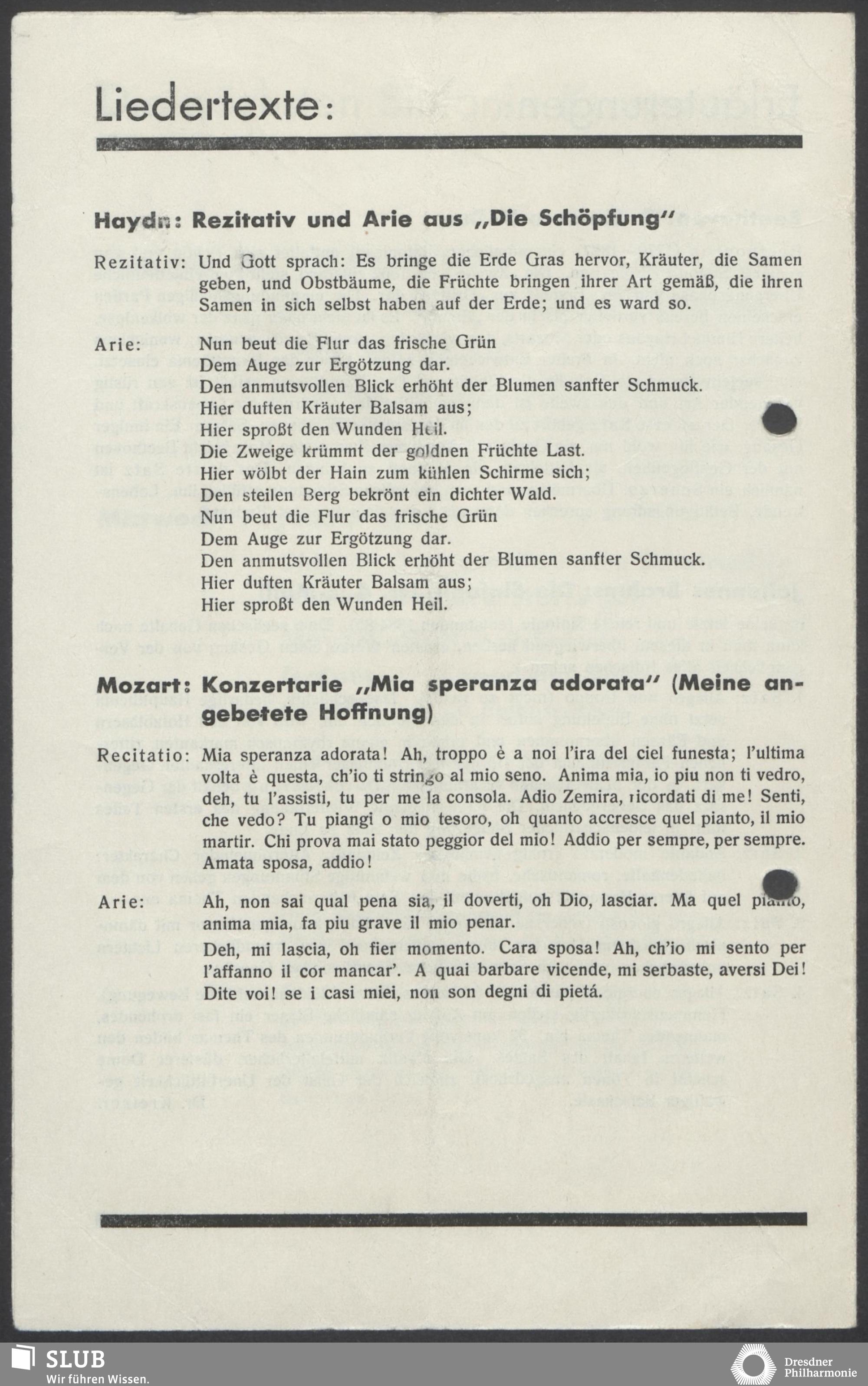 | 1909 | 1 November | Das hiesige Theaterorchester | Frankfurt am Main, Saalbau, Großer Saal | Haydn: Die Schöpfung | Hermine Bosetti, Josef Tyssen, Carl Braun, Wilhelm Bauer, Rühl'scher Sangverein | 1. Abonnement-Konzert | *4 | |