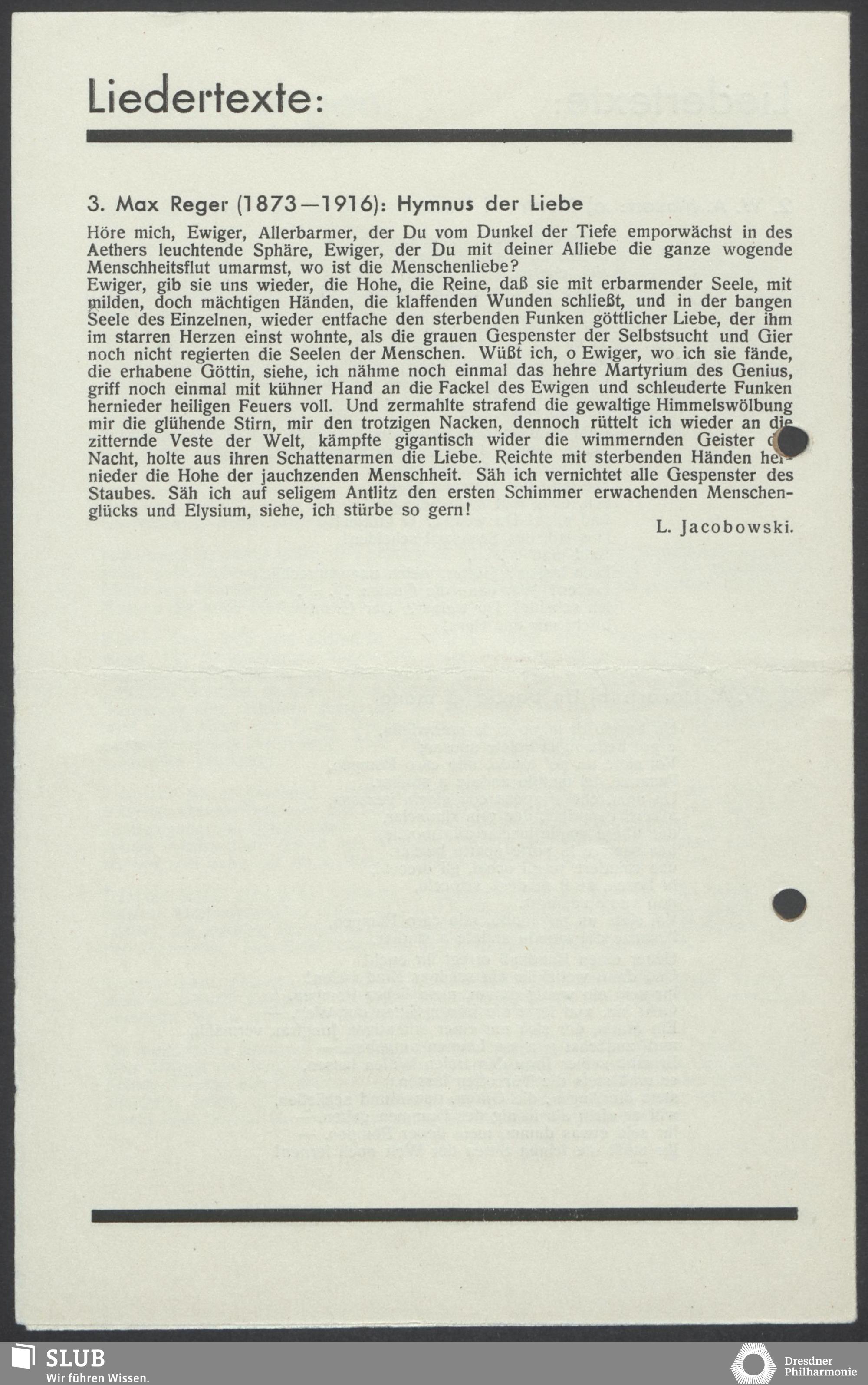 | 1911 | 28 May | Hoftheater | Darmstadt | Reger: 100 Psalm | Rühl'scher Sangverein | NZM | ||