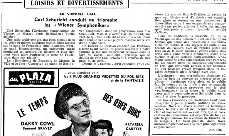 - "Schuricht... Backhaus..." La Liberté (1956.5.13).
