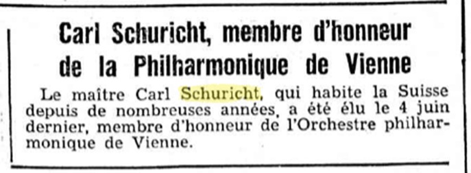 - "Carl Schuricht, membre d'honneur de la Philharmonique de Vienne." Journal de Genève (1960.6.11).